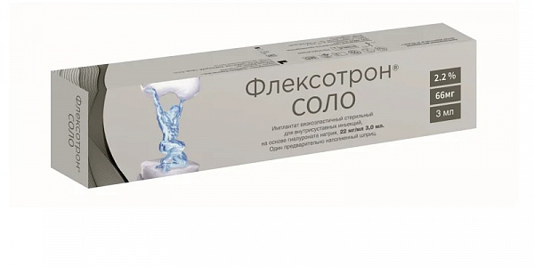 Флексотрон Соло средство для внутрисуставного введения шприц 22мг/мл, 2,2% 3,0мл шприц 1шт в наличии. Узнайте, как купить товар с бесплатной доставкой по Магнитогорску, Магнитогорскому городскому округу и Челябинской области области на странице «
