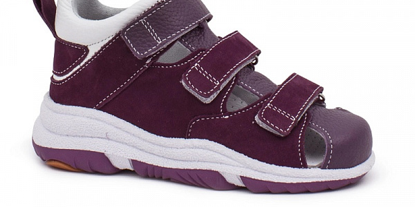Сандали Orto-Care для девочек D-718-77/07KN сиреневые ORTO-CARE Назначение: плоскостопие Фиксация: на липучках Стелька: ортопедическая, съемная Высота каблука: 3 см Материал верха: натуральная кожа Материал подкладки: натуральная кожа Материал подошвы: термоэластопласт (ТЭП) Материал стельки: натуральная кожа, пенополиуретан Детские ортопедические сандалии - мягкая и комфортная модель фиксирующей обуви. Увеличенный жёсткий задник поддерживает голеностоп ребёнка и в сочетании с закрытым мысом предотвращает завал стопы. Каблук Томаса незаметно встроен в конструкцию подошвы из гибкого термоэластопласта: инновационное решение позволяет формировать правильный стереотип походки. Верх и подкладка выполнены из натуральной кожи с замшевыми вставками, что исключает натирание и возникновение мозолей при активной ходьбе. Съёмная ортопедическая стелька с кожаным перфорированным покрытием оказывает комплексное лечебно-профилактическое воздействие на детскую стопу. Быстрая и удобная фиксация изделия реализуется посредством трёх липучек Velcro по подъёму. Обувь рекомендована при детском плоскостопии, для коррекции и предупреждения деформационных процессов, для общего укрепления и поддержания отделов стопы ребёнка. Подбор размера Встаньте на лист бумаги и обведите контур стопы. На полученном контуре измерьте отрезок от самого длинного пальца до пятки. Это и есть длина стопы, указанная в таблице. 26: 16.5 см 27: 17 см 28: 17.5 см 29: 18.5 см 30: 19 см 31: 19.5 см 32: 20.5 см D-718-77/07KNmag /upload/iblock/1ea/1ea9d2583ea9c3772a60d3a969058e3c.jpg